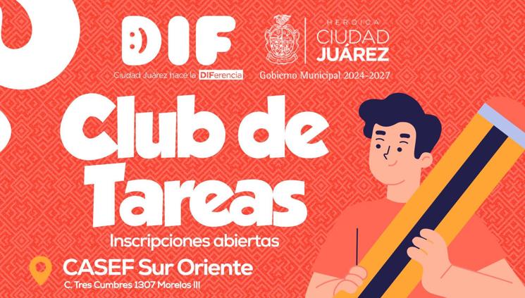 Para apoyar a niños y niñas a reforzar lo aprendido en clases y apoyar en la comprensión de contenidos, invitan a unirse al club de tareas en CASEF Sur Oriente, en calle Tres Cumbres 1307, Morelos III.