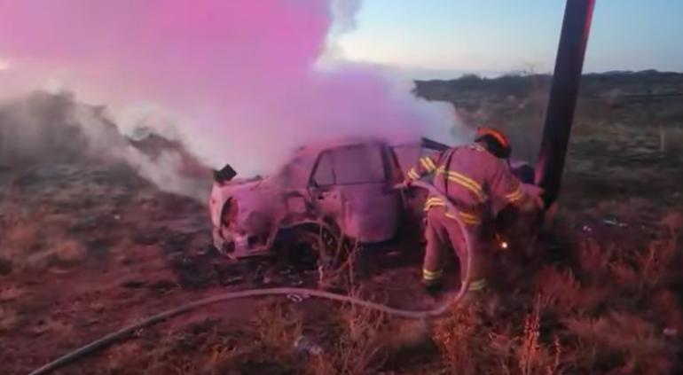 Esta mañana se registró un choque e incendio de un vehículo en la carretera Anapra-Santa Teresa.
