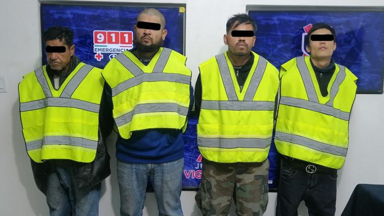La Secretaría de Seguridad Pública Municipal reportó la detención de Ramón C. R. de 58 años de edad, Fernando Arturo H. M. de 34, Ramiro I. A. de 30 e Isaac M. de 21 ,por posesión de vehículo con reporte de robo y delitos contra la ley federal de armas.