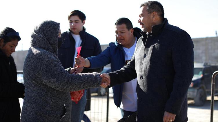 En la colonia Felipe Ángeles, el presidente municipal Cruz Pérez Cuéllar comenzó la entrega de piernas de cerdo a residentes del poniente de Ciudad Juárez.