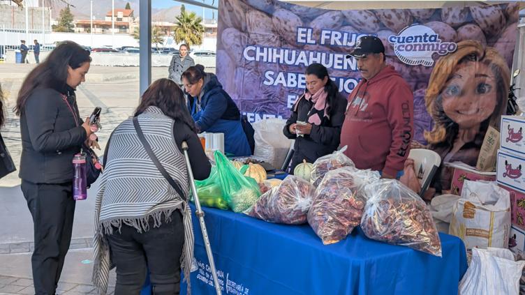Productores del municipio de Cuauhtémoc llegan a Ciudad Juárez a comercializar sus alimentos en las oficinas gubernamentales de Pueblito Mexicano y en el Parque Central.