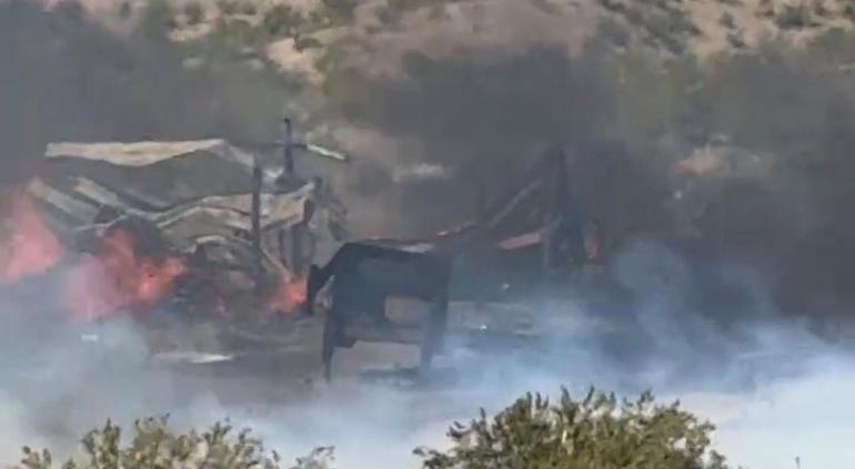 Esta mañana se registró un fuerte incendio en unas tarimeras ubicadas en el poblado de San Isidro en el Valle de Juárez.