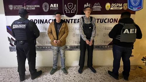 La Fiscalía General del Estado dio a conocer que elementos investigadores, en colaboración con policías municipales, arrestaron a dos hombres por posesión de vehículo con reporte de robo en Estados Unidos.