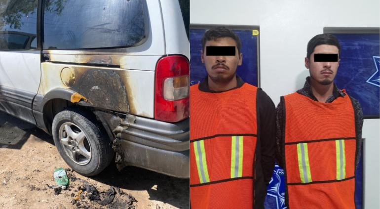 La Policía Municipal informó que arrestaron a dos jóvenes acusados de intentar incendiar un vehículo en la colonia Kilómetro 20 de Ciudad Juárez.