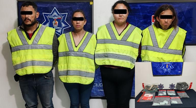 La Policía Municipal informó la detención de Jonathan U., Karen Iliana L. G., Lluvia Cristal C. M. e Iván E. G., por su presunta responsabilidad en delitos contra la salud, así como por desobediencia y resistencia de particulares.
