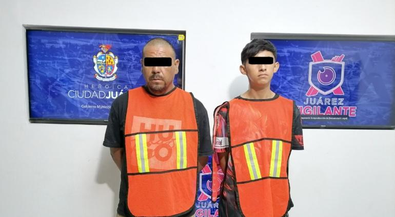 La Policía Municipal informó la detención de Emmanuel B. B. de 18 años y Juan Gerardo H. F., de 42 por su presunta responsabilidad en la comisión de los delitos de posesión de vehículo con reporte de robo y delitos contra la ley federal de armas de fuego y explosivos.