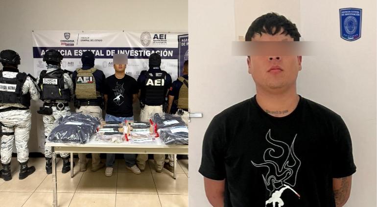 Durante la detención, se realizó el aseguramiento de cinco armas, diversas balas y equipo táctico que estaba dentro de una casa ubicada en la calle Sendero de los Yuncos y Monte Blanco, del fraccionamiento Senderos de San Isidro.