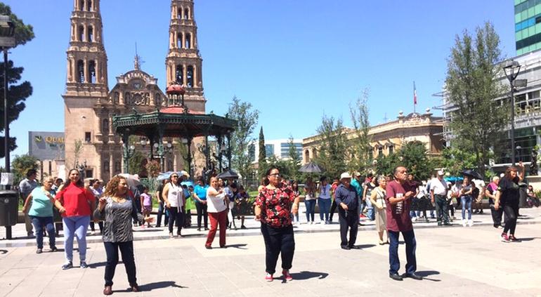 Los adultos mayores bailaron varios géneros como pop, reggaetón, cumbias y rancheras e inmediatamente llegaron a verlos personas que pasaban por la Plaza de Armas del Centro Histórico de Chihuahua.