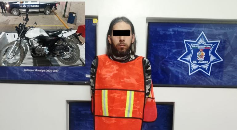 La Policía Municipal informó la detención de un hombre por posesión de vehículo con reporte de robo, tras recuperar una motocicleta robada horas antes en Ciudad Juárez.