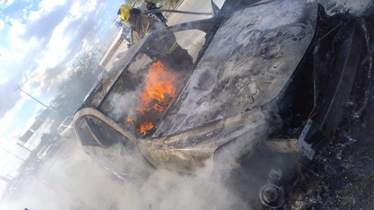 Auto se incendia en Puente del Bravo; bomberos evitan tragedia
