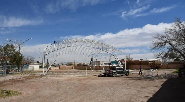 Actualmente ya se levanta la estructura metálica y está pendiente la colocación de las láminas que darán sombra a un área del plantel.