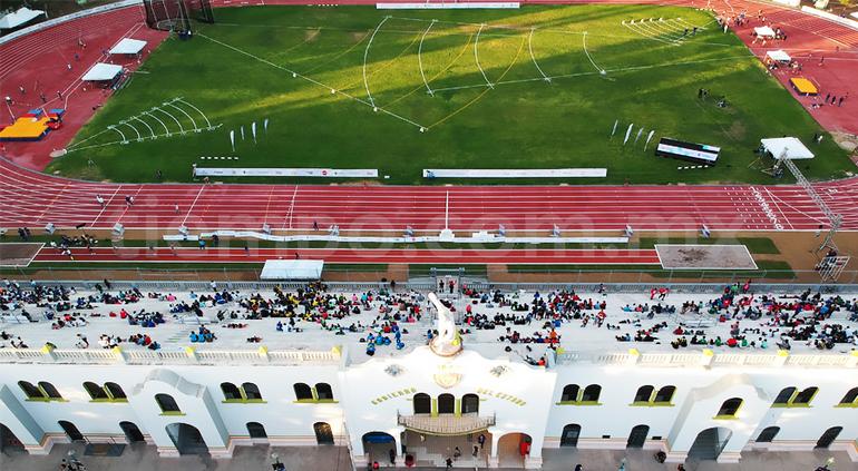 Mil 300 deportistas participarán en la sección de atletismo, por lo que el Discóbolo luce con pintura nueva en sus carriles para las pruebas de velocidad y resistencia.