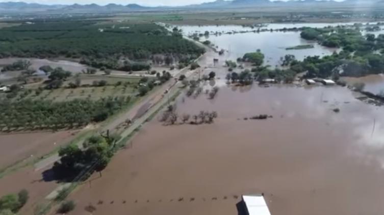 Por medio de redes sociales se compartieron videos de predios inundados en Nuevo Casas Grandes tras las recientes lluvias.