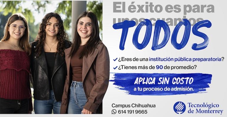 El Tecnológico de Monterrey Campus Chihuahua abrió la convocatoria para que estudiantes de preparatorias públicas con promedio superior a 90 realicen sin costo su proceso de admisión, como parte de una iniciativa para ampliar el acceso a la institución.