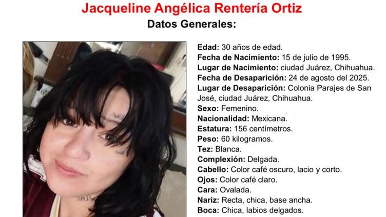 Jacqueline Angélica Rentería Ortiz fue vista por última vez el pasado 24 de agosto del presente año en calles de la colonia Parajes de San José.