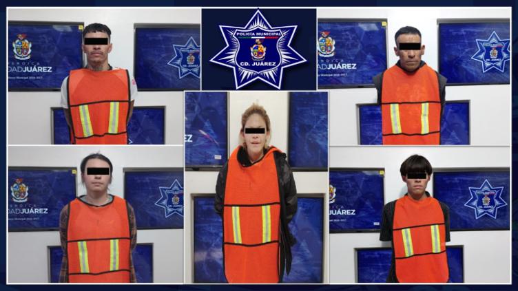 Los detenidos fueron identificados como Karla Alejandra C. C., de 40 años; José Antonio M. M., de 25; Samuel B. M., de 43; Gabriel Enrique O. M., de 32; y Marcelino R. A., de 18 años.