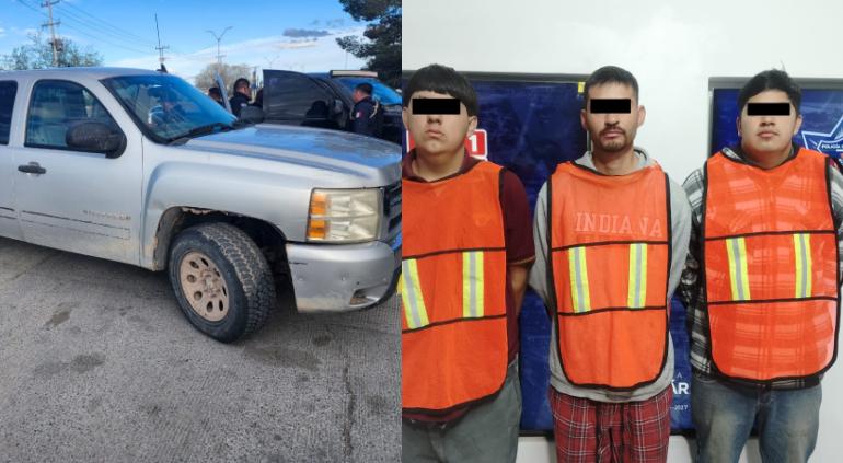 Los agentes acudieron al cruce de las calles Leobardo Bernal y Tehuacán, en la colonia Valle Dorado, donde sorprendieron a los sospechosos dañando las cerraduras de un vagón para extraer el grano y presuntamente cargarlo en una camioneta Chevrolet Silverado 2010 y una GMC Sierra 2009.