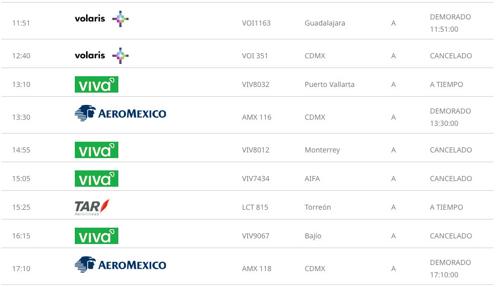 En tanto que vuelos a ciudades como Guadalajara y Ciudad de México aparecen con retraso, aunque con riesgo de cancelación.