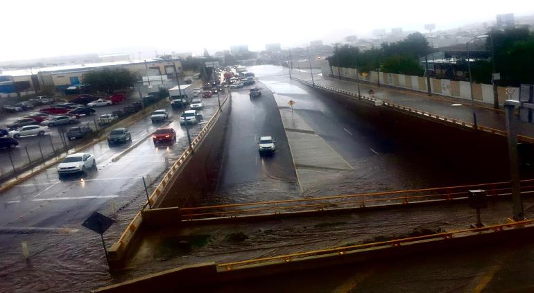 La Policía Vial cerró el túnel de la avenida La Cantera, cruce con el periférico De la Juventud, debido a que se inundó por el aguacero que sorprendió a la ciudad de Chihuahua. Dos autos terminaron atrapados. Además hay gran tráfico al norte del Peri por las inundaciones.