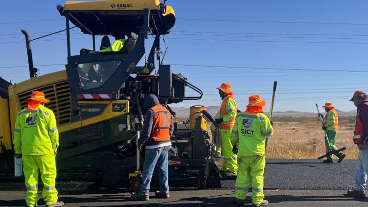 El Centro SICT Chihuahua dio a conocer que el Tren de Pavimentación alemán Bomag reparó diez kilómetros de la carretera El Sueco-Janos y faltan solo unos cinco.