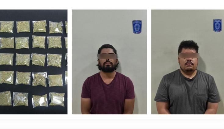 Elementos de la Agencia Estatal de Investigación (AEI), adscritos al Centro de Operaciones Estratégicas (COE), de la Fiscalía de Distrito Zona Norte, realizaron la detención de Luis Alberto C. J., y Alexander C. J., asegurándoles dosis de marihuana.