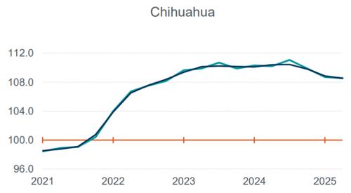 Sin embargo, el caso del estado grande, Chihuahua, no fue positivo y se ubicó en la parte de las entidades que sufrieron retrocesos tanto trimestrales como anuales.