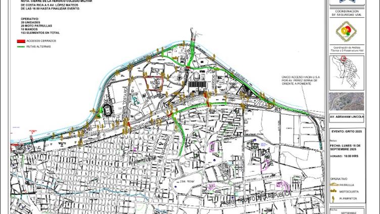 Con motivo de la celebración del 215 aniversario del Grito de Independencia, este 15 de septiembre se desplegará un operativo especial de tránsito a partir de las 4:00 de la tarde.