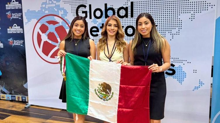 Las chihuahuenses Yukary Arellano García, Yuritzy Arellano García y Ana Fernanda de la Fuente Aragón asistieron a la Cumbre Internacional de la Juventud y la Democracia de Redmun en Ecuador, como líderes que buscan fortalecer la democracia y participación ciudadana.