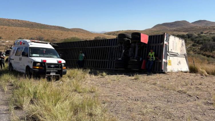 Un tráiler cargado con pacas de algodón sufrió una volcadura en el kilómetro 6.5 de las Curvas del Perico, circulando de norte a sur. El vehículo salió del camino en una curva y, al intentar regresar a la cinta asfáltica, volcó sobre su costado derecho, informó la Guardia Nacional.