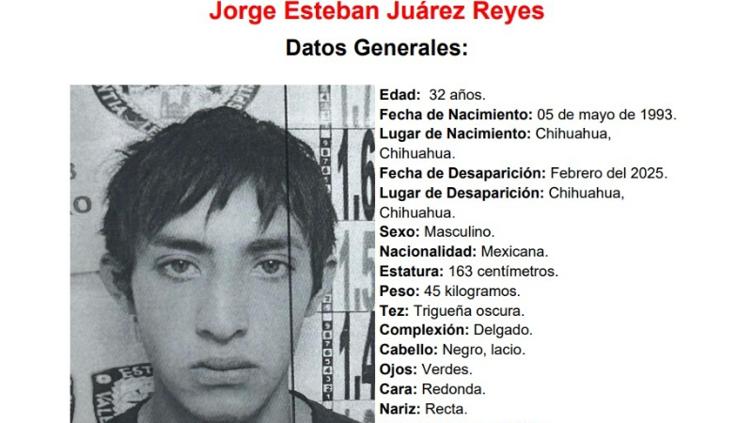 La Fiscalía solicita ayuda para encontrar a Jorge Esteban Juárez Reyes de 32 años, quien desapareció en febrero del presente año en el centro de Chihuahua capital. Por ahora se desconoce su paradero.