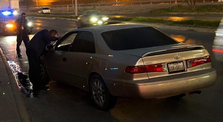 El auto dejado en el lugar era un Toyota en color arena con placas de circulación de Texas, el cual estaba chocado.