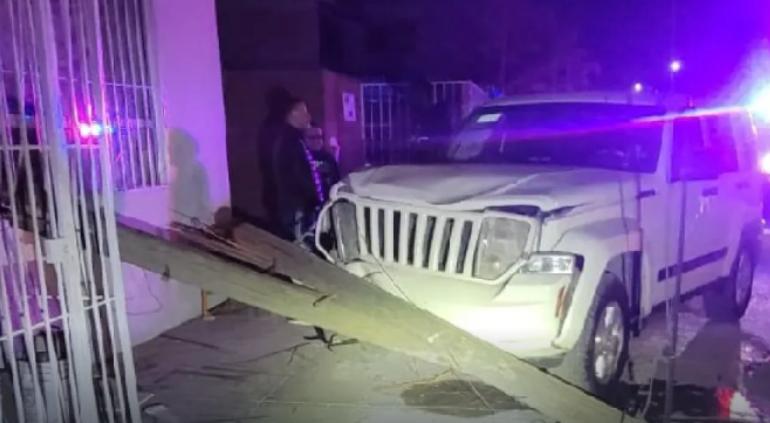 En el lugar el conductor de una camioneta Jeep Liberty en color blanco perdió el control y chocó contra un poste de concreto, el cual derribó.