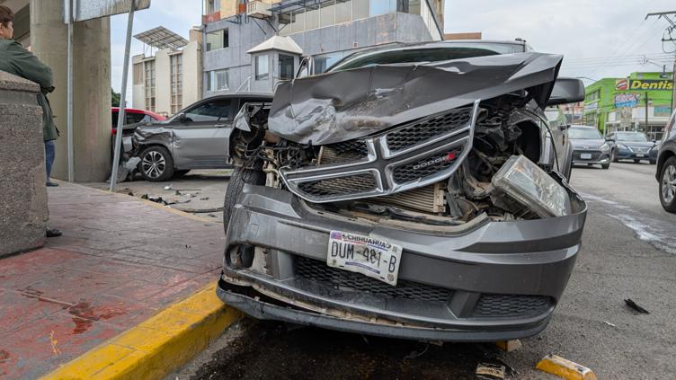 En el cruce de avenida Teófilo Borunda e Independencia, se registró un aparatoso choque entre una Dodge Journey y una Chevrolet Captiva, ambas de color gris.