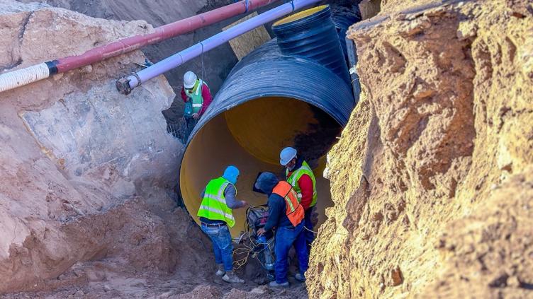 La Junta de Agua reportó un avance del 96 por ciento en las obras de reposición del colector Viñedos, mismo que atraviesa por el bulevar Gómez Morín, entre Paseo de la Victoria y Camino a Escudero.