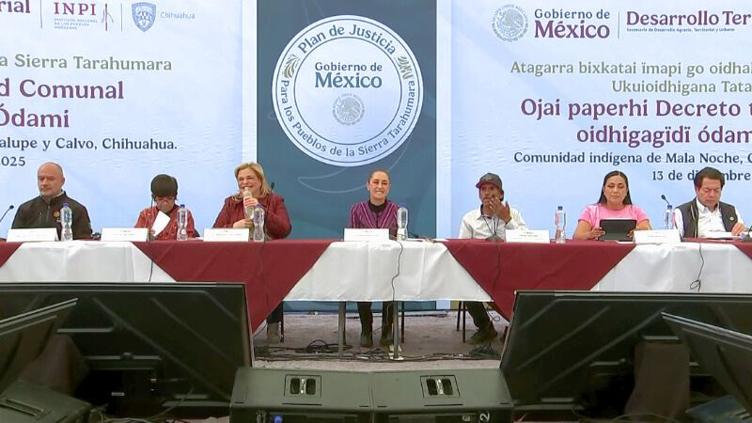 La presidenta Claudia Sheinbaum encabezó el evento en Guadalupe y Calvo, con la gobernadora Maru Campos Galván, para firmar el decreto que entrega tierras como propiedad comunal al pueblo ódami.