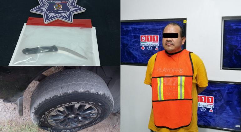 Arrestaron a un hombre por ponchar con un cuchillo las llantas de la camioneta de un vecino en la colonia Oasis Revolución.