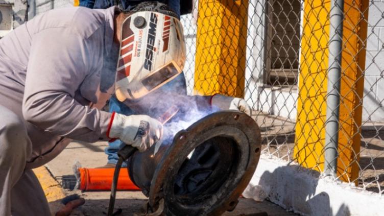 La Junta de Agua y Saneamiento de Juárez realiza trabajos de reparación en el Rebombeo de Aguas Negras número 24, ubicado en la colonia Jardines del Aeropuerto, luego de que se detectara una fuga de aguas residuales por daños en la infraestructura.