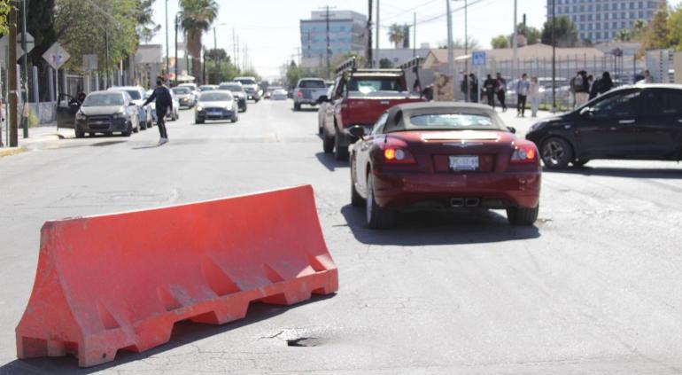 La Coordinación de Vialidad pidió a los conductores a circular con precaución en la avenida del Charro y Henry Dunant, frente a IADA-IIT por hundimiento en el lugar.
