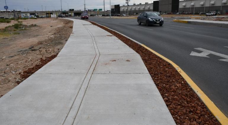 La Dirección General de Obras Públicas avanza en la construcción de banquetas como parte de los trabajos complementarios en la ampliación de la avenida De las Torres.