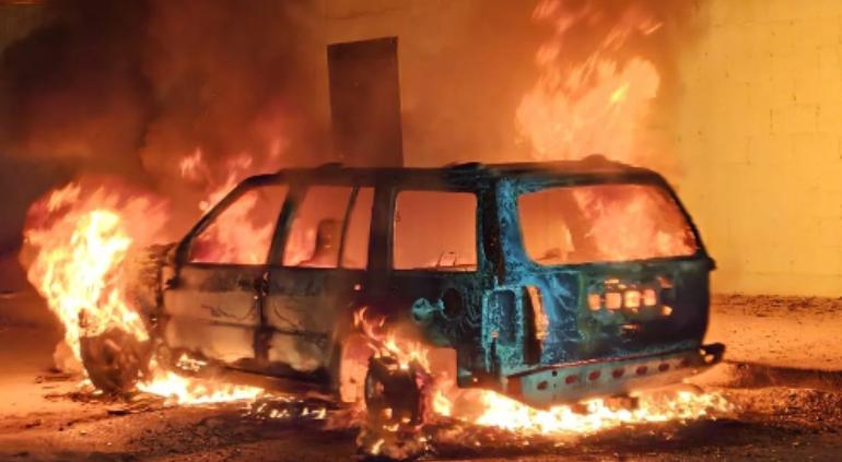 Un automóvil fue consumido por el fuego durante la madrugada mientras se encontraba estacionado frente a una casa en la colonia Fray García de San Francisco.