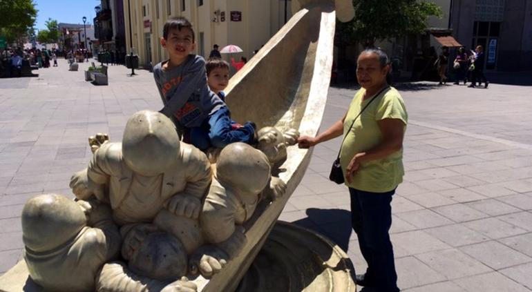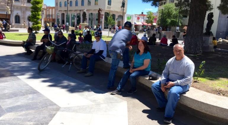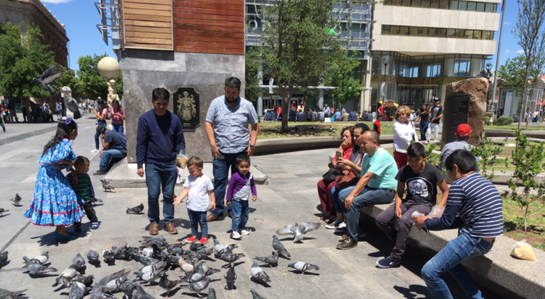 Desde chicos hasta grandes, disfrutan momentos de convivencia en la Plaza de Armas, algunos comen una nieve, otros visitan la catedral de Chihuahua, algunos niños juegan en las fuentes y otros más optan por andar en bicicleta o leer un libro.