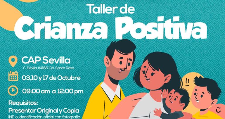 El DIF Municipal invita a la comunidad a acudir al taller de crianza positiva que impartirán a partir del 3 de octubre.