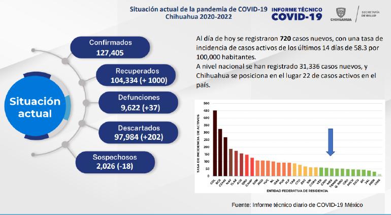 En el estado de Chihuahua confirmaron en el último día 720 positivos más por COVID-19, así como 37 muertes y mil pacientes recuperados.