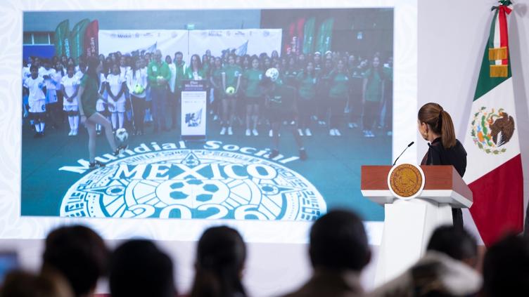 La presidenta Claudia Sheinbaum Pardo dio el banderazo inicial al programa de Futbol Social con el arranque del torneo femenil Sub-21 de futsal, realizado este 26 de febrero en Michoacán como parte del llamado “Mundial Social”, organizado por el IMSS.