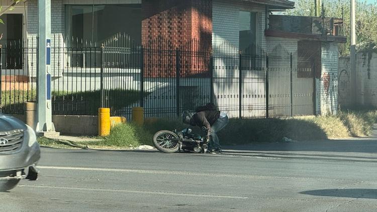 Un motociclista protagonizó un incidente vial luego de derrapar en el cruce de las avenidas De la Raza y De los Álamos, entre la Del Charro y Valentín Fuentes.