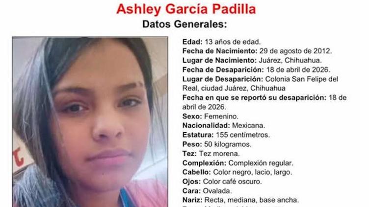 Ashley García Padilla, de 13 años de edad, fue vista por última vez ayer 18 de abril, en la colonia San Felipe del Real, y hasta el momento se desconoce su paradero.