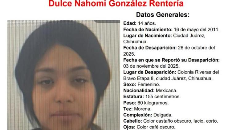 Autoridades pidieron ayuda de la comunidad para localizar a Dulce Nahomi, una adolescente de 14 años de edad desaparecida en el fraccionamiento Riberas del Bravo VIII.