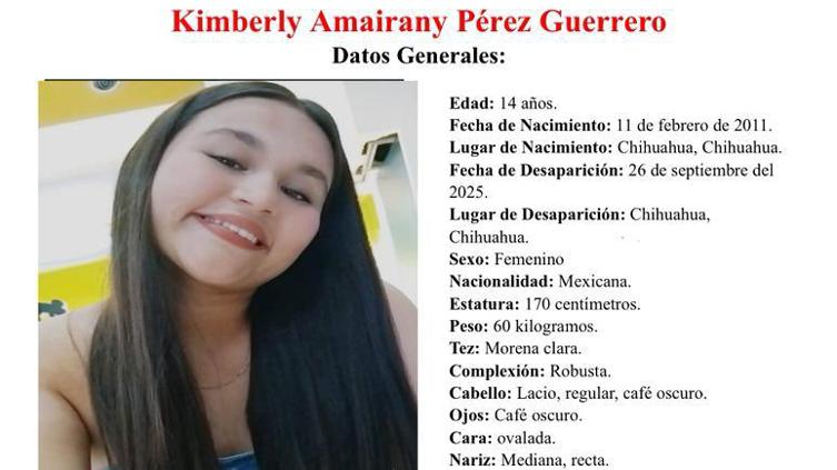 Una joven de 14 años de edad, identificada como Kimberly Amairany Pérez Guerrero. Desapareció en la colonia Villas del Real.