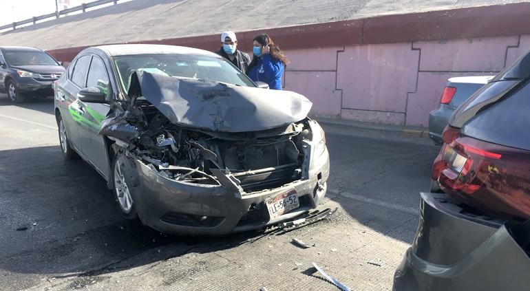 El accidente ocurrió en sentido de norte a sur, casi en el cruce con el bulevar Manuel Gómez Morín, en donde según versiones, el guiador del Sentra se cambió de carril sin precaución e impactó camioneta Renault color gris.