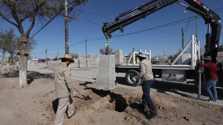 Inician instalación de nuevo alumbrado en parque de Riberas del Bravo